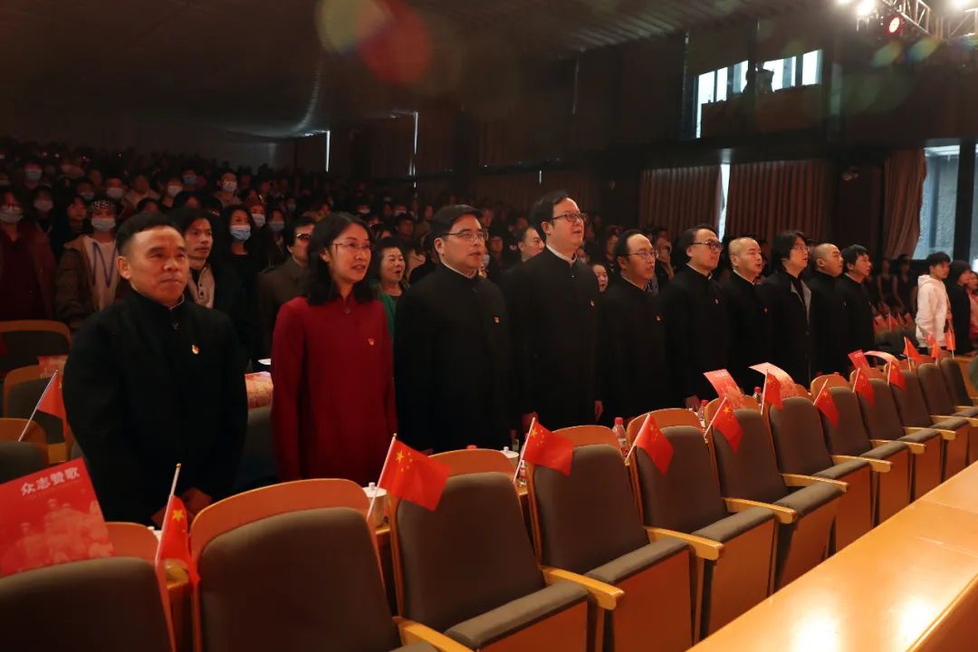学校党政领导班子成员金一斌、高世名、孙旭东、刘正、方培新、沈浩、傅巧玲、韩绪、徐国强、余旭红;原浙江音乐家协会主席、作曲家晓琪,浙江省合唱协会名誉理事长、女高音歌唱家谭丽娟,浙江省教育厅艺术教育委员会副秘书长、浙江省音乐教育委员会副主任鲁晓红,浙江交响乐团团长、男中音歌唱家郭义江,浙江省合唱协会副理事长、青年指挥家周卫平,中国古典诗词歌曲研究中心理事,浙江艺术职业学院声乐副教授章蔓丽;各职能部门、教学单位负责人,各级工会、共青团等群众团体负责人及师生代表等1000余人出席歌会。